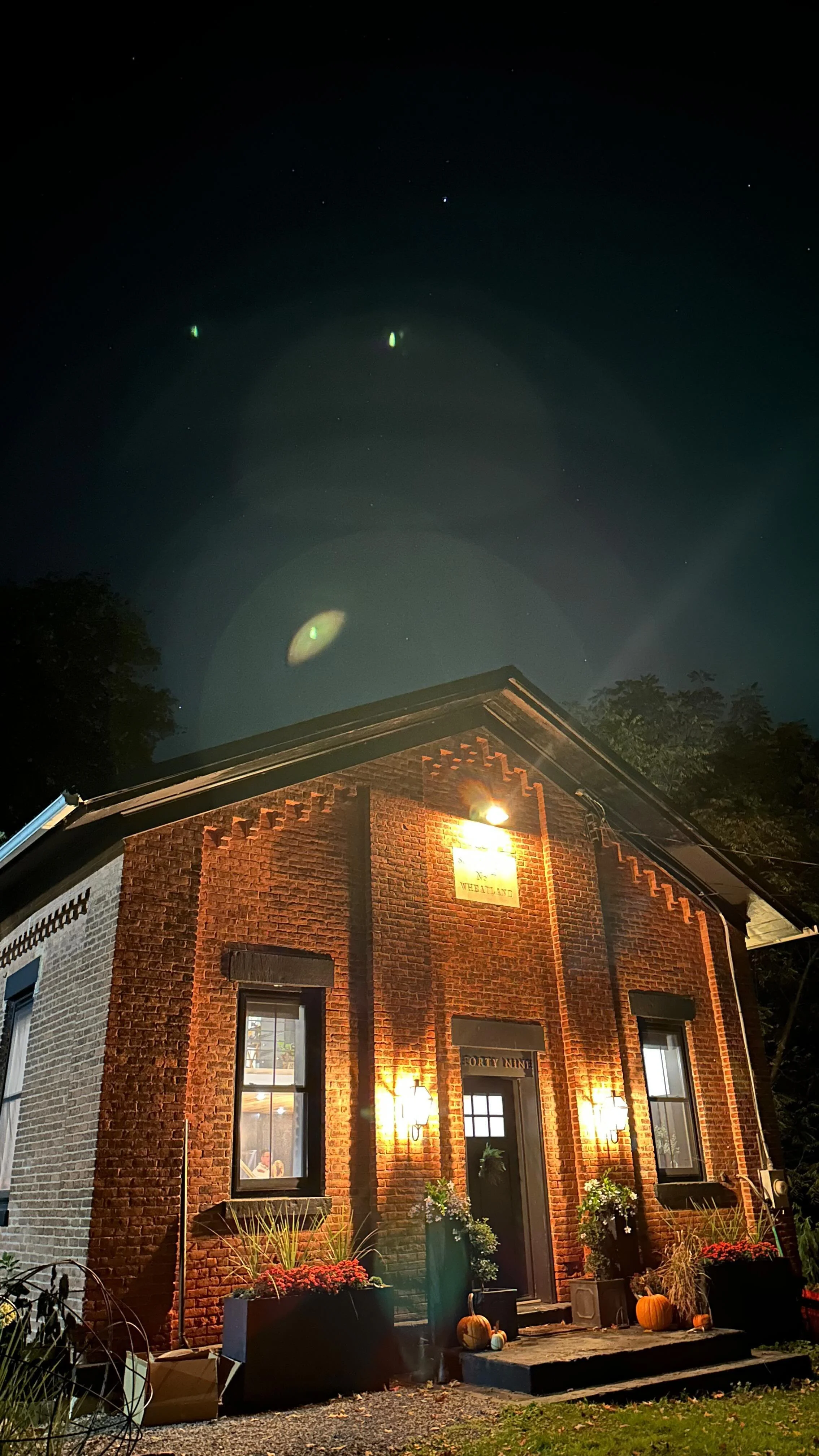 A restored 1800s schoolhouse that offers a unique blend of historic charm and modern comfort,